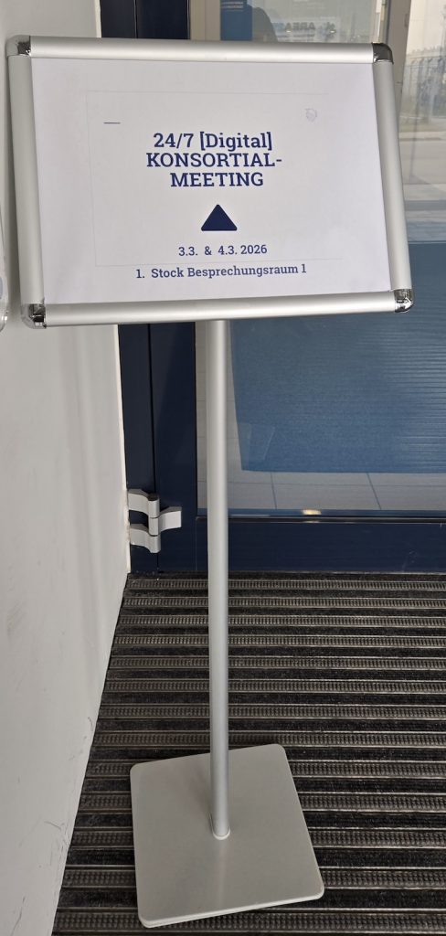 Anfang März 2026 traf sich das Konsortium des Projekts 24/7 Digital an der FH Wiener Neustadt, um den aktuellen Projektstand zu besprechen und die nächsten Schritte abzustimmen. Im Mittelpunkt standen der laufende Feldtest der App 24h Dialog und 24h KlimaFit, der Usability-Test des InfoPoint sowie die Weiterentwicklung des Geschäftsmodells.